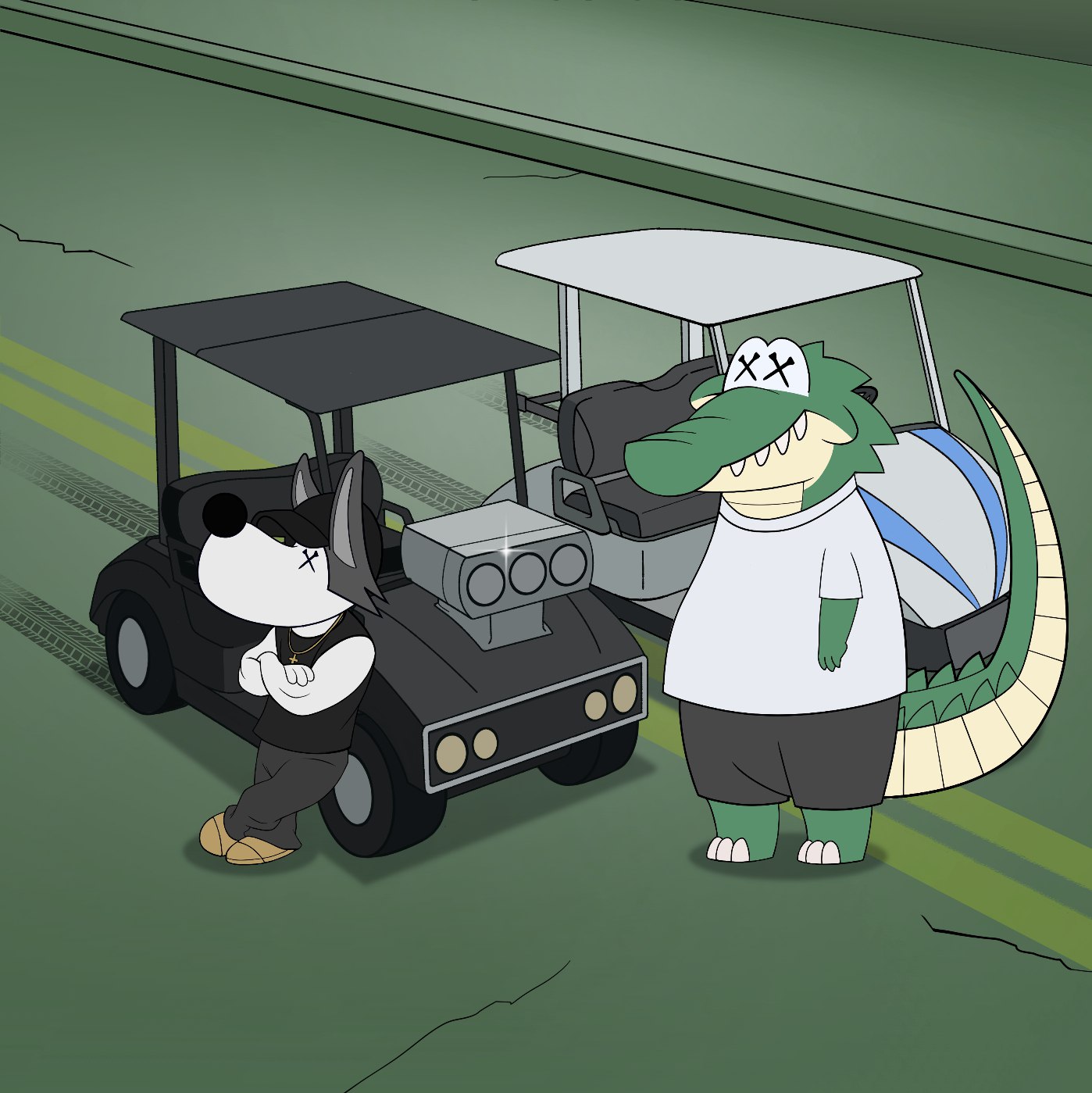 Chippy, pushing his Skyline Cart to the limit, loses control and spins out, crashing into a bunker. Now, he owes Hunter the pink slips to his prized golf cart.