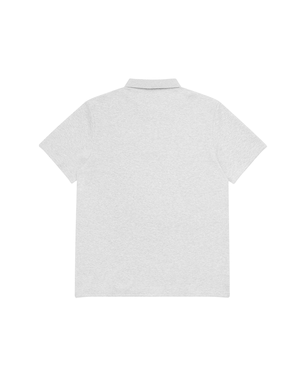 Grey polo shirt with a small logo on a white background