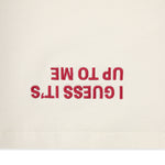 - Embroidered 'I Guess It's Up To Me' Hem Detail